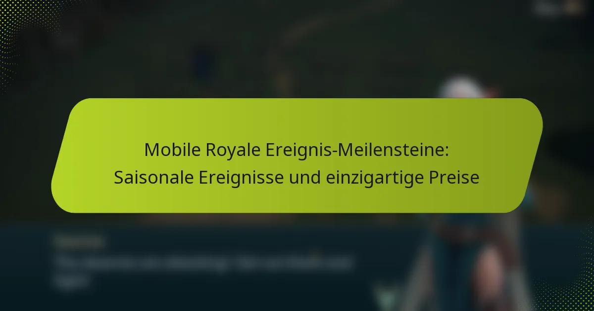 Wichtige Ereignismilestones in Mobile Royale sind spezifische Ziele, die die Spieler während saisonaler Events erreichen möchten. Diese Milestones sind entscheidend, um einzigartige Preise freizuschalten und das gesamte Spielerlebnis zu verbessern.