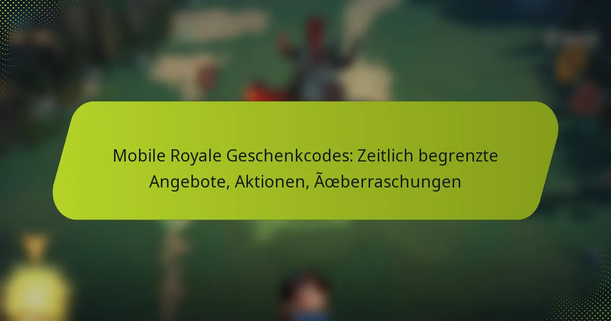 Mobile Royale Geschenkcodes sind einzigartige alphanumerische Zeichenfolgen, die Spieler gegen aufregende Belohnungen im Spiel einlösen können, um ihr Spielerlebnis ohne monetäre Kosten zu verbessern. Diese Codes werden typischerweise während Werbeaktionen veröffentlicht und bieten wertvolle Gegenstände und Boni, kommen jedoch oft mit Ablaufdaten und begrenzter Verfügbarkeit. Um das Beste aus diesen Angeboten herauszuholen, sollten die Spieler über aktuelle Codes informiert bleiben und den Einlösungsprozess sorgfältig befolgen.